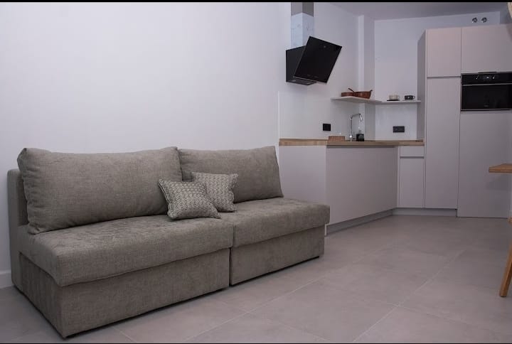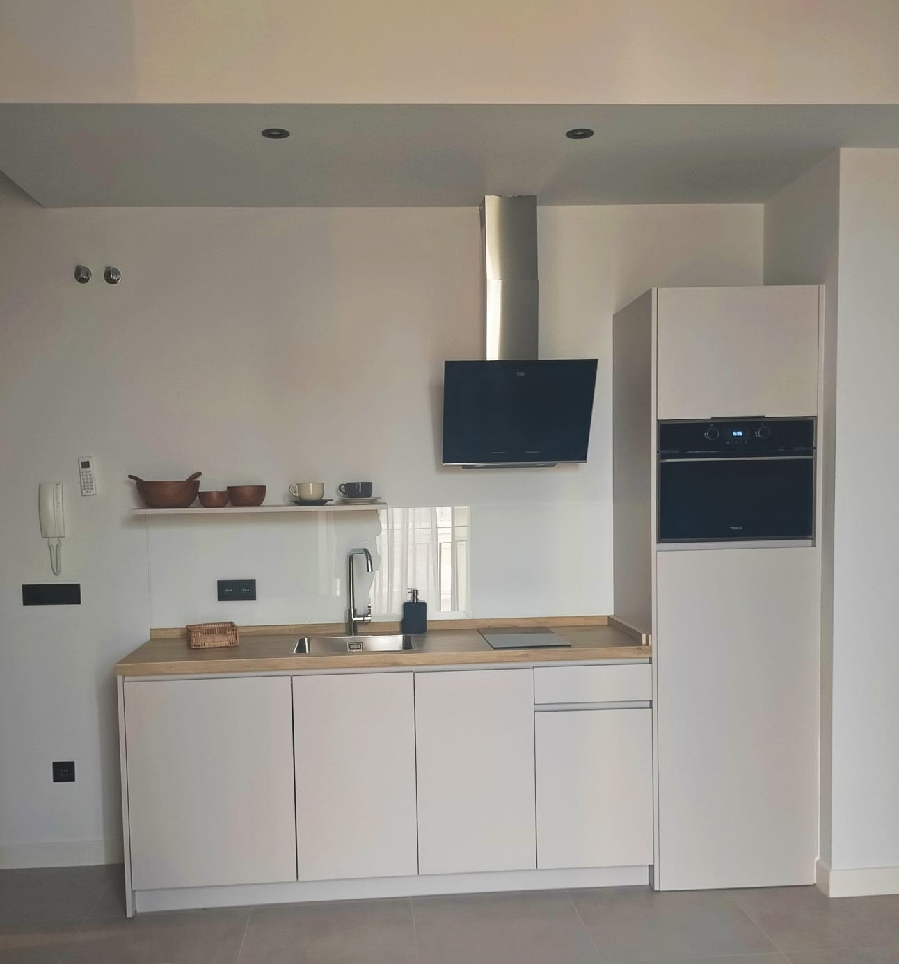 En este conjunto de apartamentos, cada cocina se diseñó pensando en la estética, la durabilidad y el aprovechamiento del espacio. Se emplearon colores tendencia —azul, verde, gris antracita o cachemire— con encimeras compactas y mobiliario a medida. La campana inclinada y la balda decorativa aportan un aire moderno y ligero. Además, se cuidó el conjunto decorativo con mobiliario que combina a la perfección: sofás, sillas y lámparas que refuerzan la identidad única de cada apartamento.